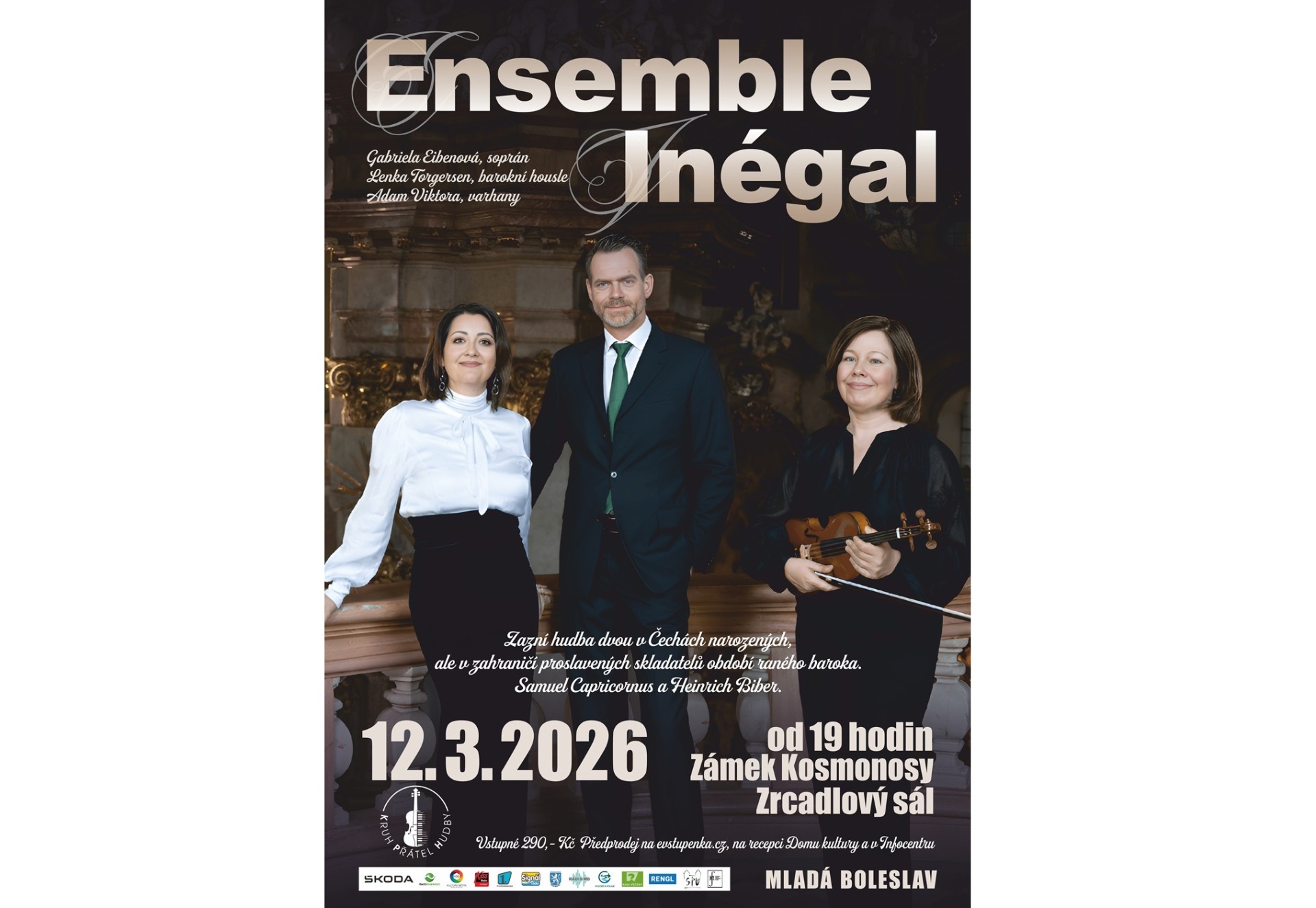 12. března (ve čtvrtek) od 19 hodin v Zrcadlovém sále zámku Kosmonosy zazní koncert pro soprán, barokní housle a varhany.